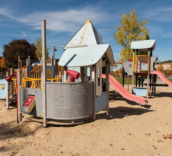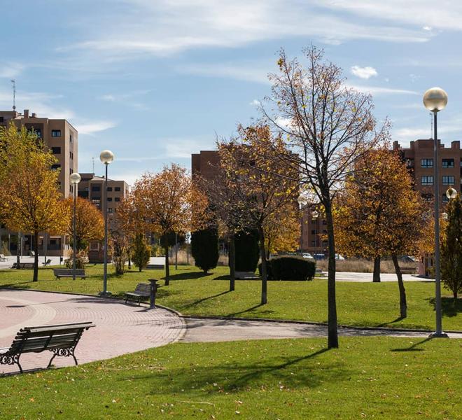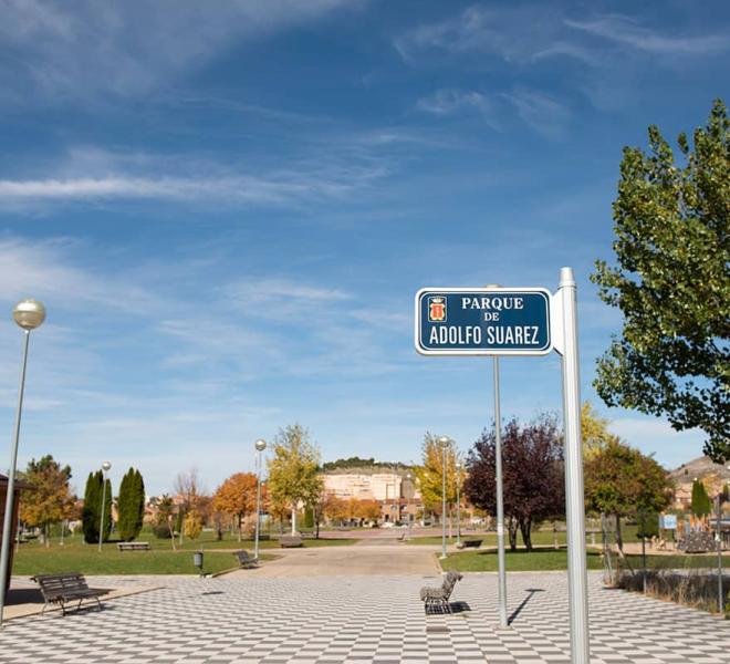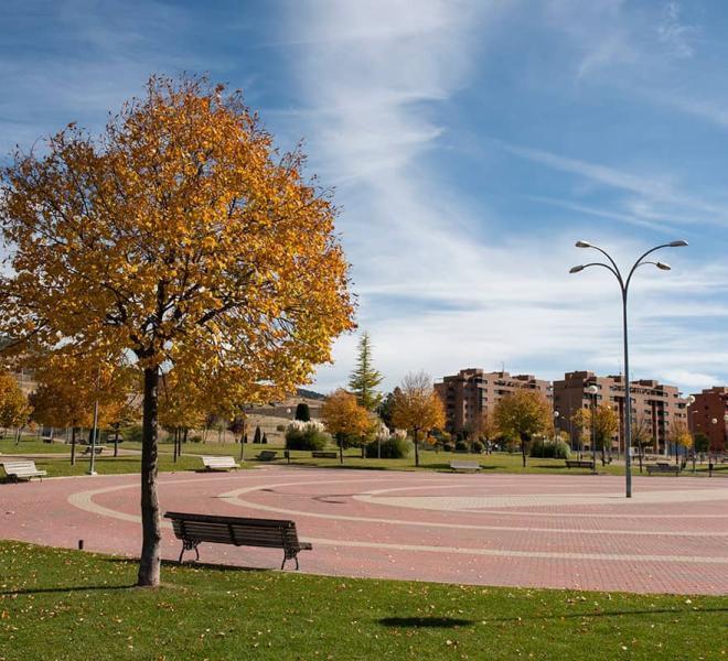 Parque situado en zona nueva de la ciudad. Dispone de amplias zonas de césped, una gran plaza pavimentada con adoquines y un área de tierra con diversos columpios para niños. Tiene una caseta de madera que en determinadas épocas estivales es un quiosco en el que se dispensas bebidas y aperitivos.