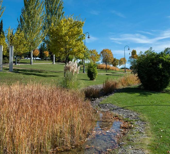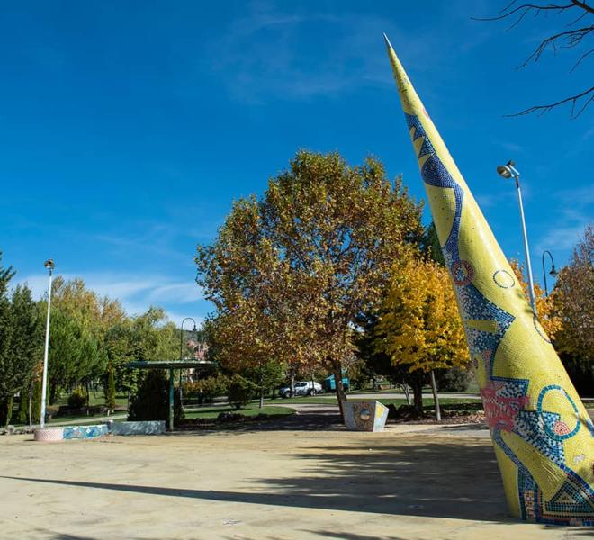 Parque que dispone de unas 4 hectáreas de superficie, ofrece muchas posibilidades para alejarse del ruido urbano. Cuenta con una zona de juegos para personas mayores, un carril-bici infantil y un arroyo artificial con circuito cerrado para el suministro de agua. Uno de sus elementos más representativos es la Plaza del Reloj de Sol o Plaza Taiyo, una creación de la artista japonesa Keiko Mataki. Su elemento principal es un cono de casi 7 metros de alto cuya sombra señala la hora solar. Keiko tardó varios años en terminar esta plaza, una obra de arte hecha para el público que cuenta además con 13 juegos, como el ajedrez o las tres en raya.